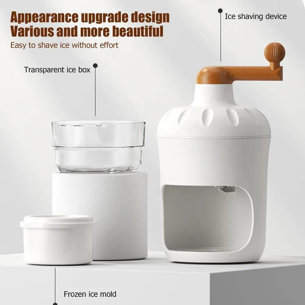 Transform your kitchen with this handheld snow ice machine! Convenient and saving money, it's perfect for creating shaved ice. This food-grade device features automatic press for easy use and easy cleaning. Ideal for homemade icy treats!